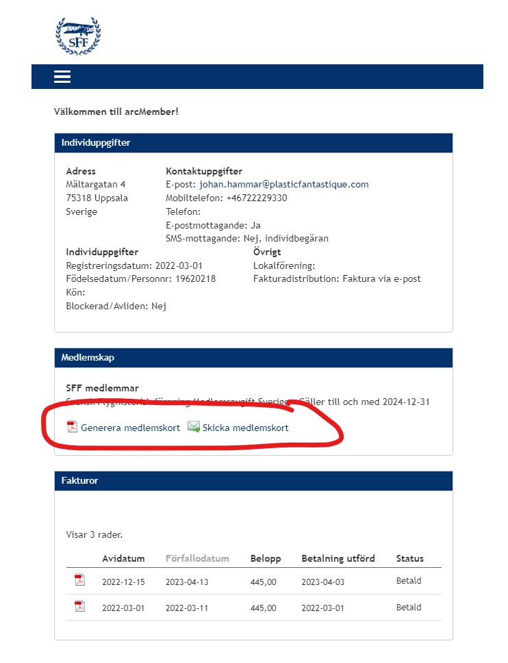 Om du tappat ditt medlemskort så kan du hämta ut ett nytt här. Logga in nedan och du tas till första registersidan. Mitt på sidan finner du länkar för att spara ned eller e-posta ditt medlemskort.