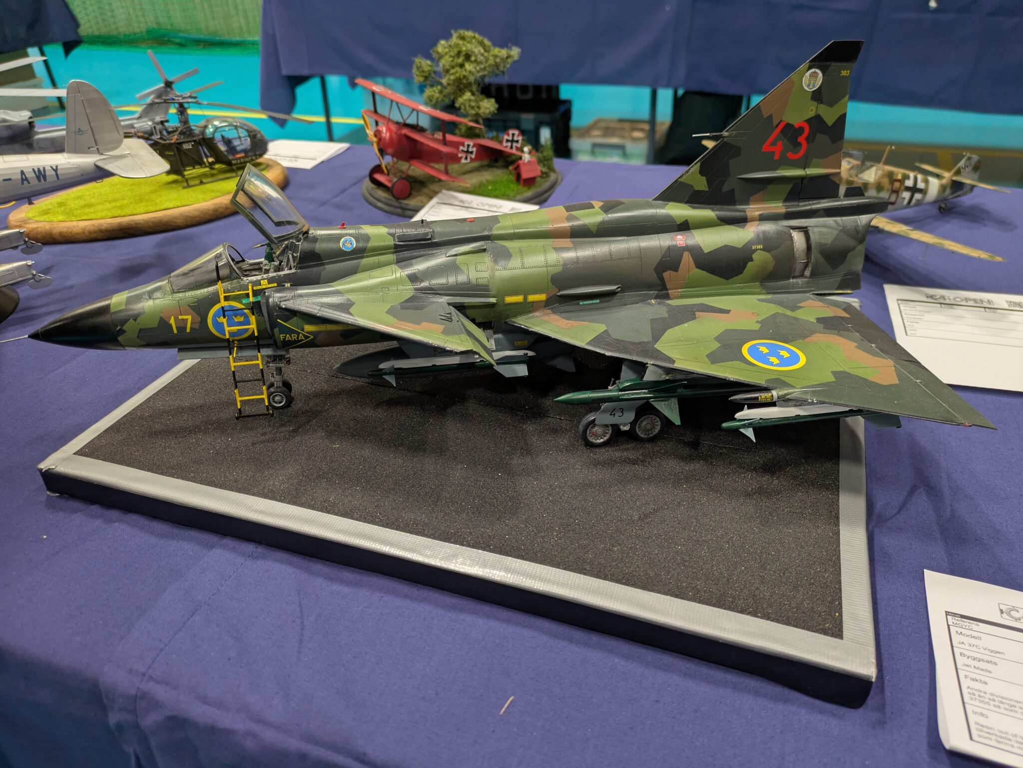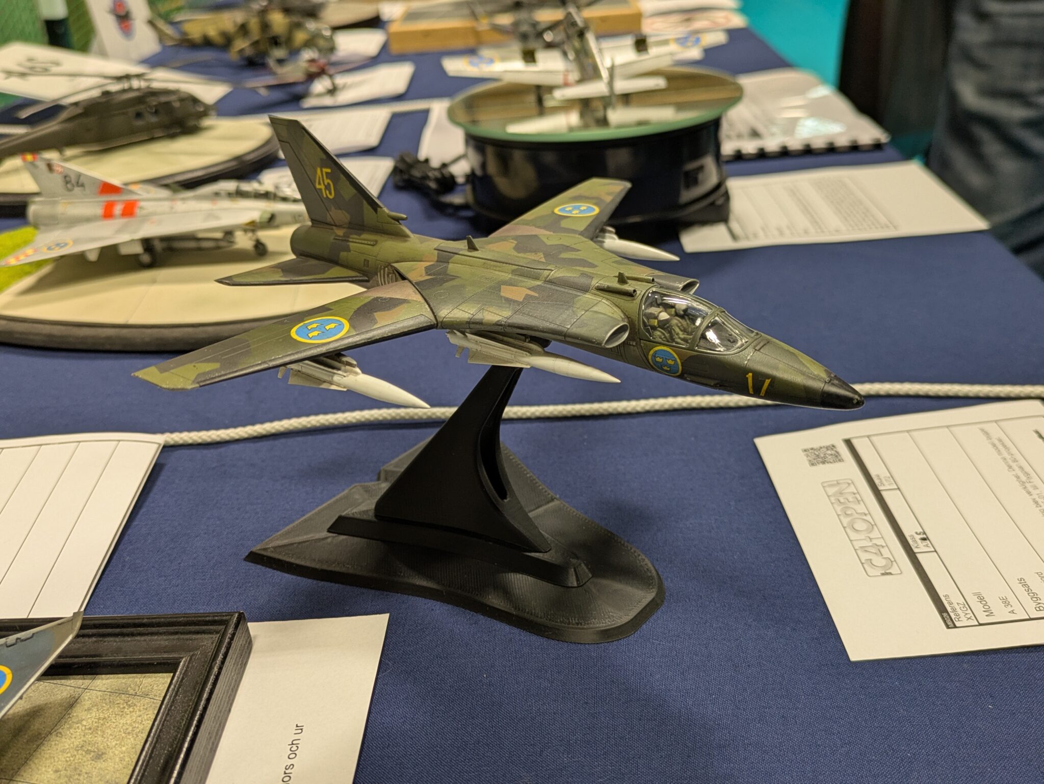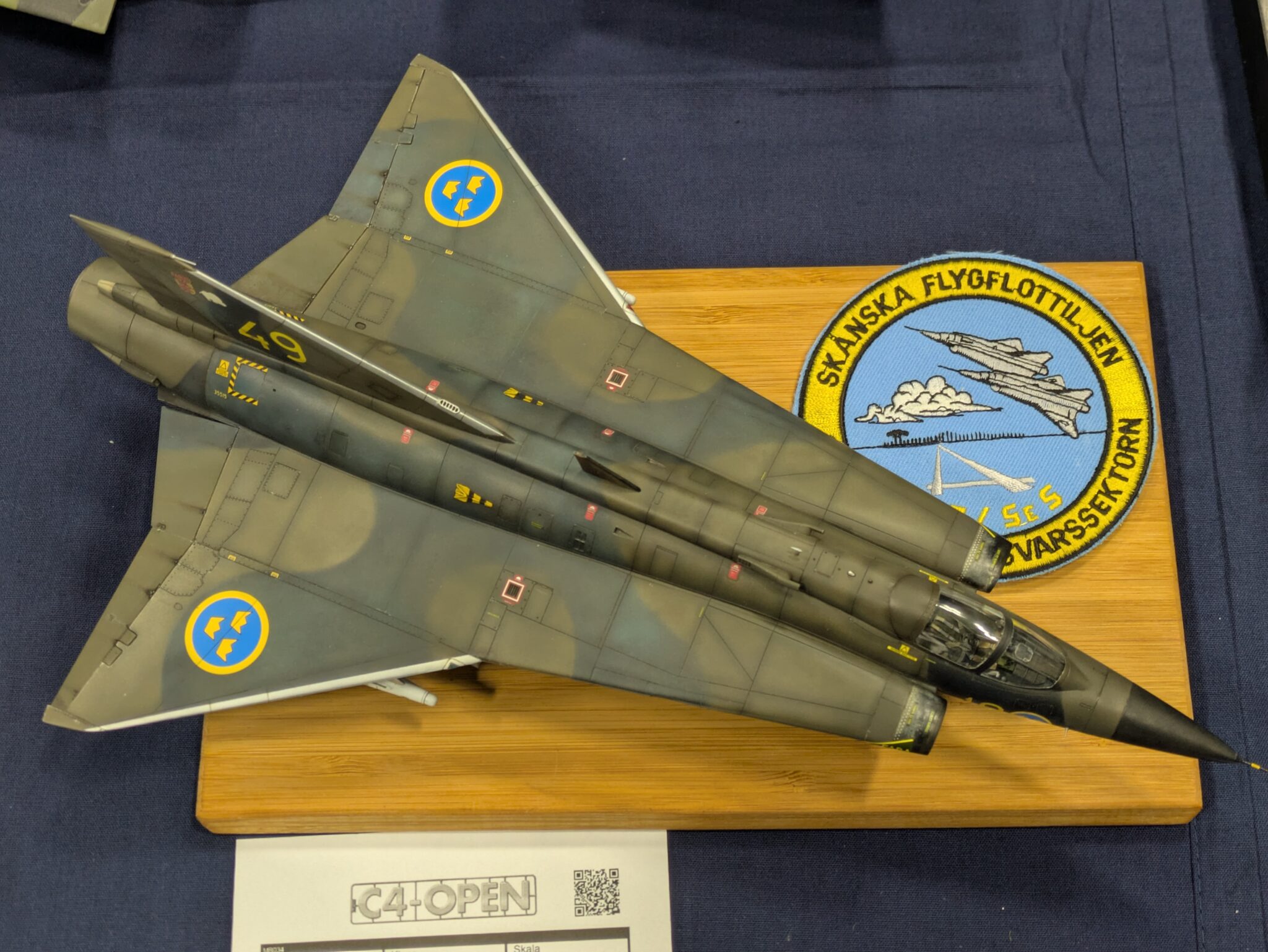 På årets C4-Open i Malmö, nu i helgen (25-26 oktober), fick Claes Wahlund från Pilot-Replicas mottaga SFF-priset för sin SK 60C i splinter kamouflage. Rickard Andersson överräckte priset till Claes. Första fotot: Niklas Jansson. Fotot på SK 60C: Rickard Andersson. Text: Tor Netterby