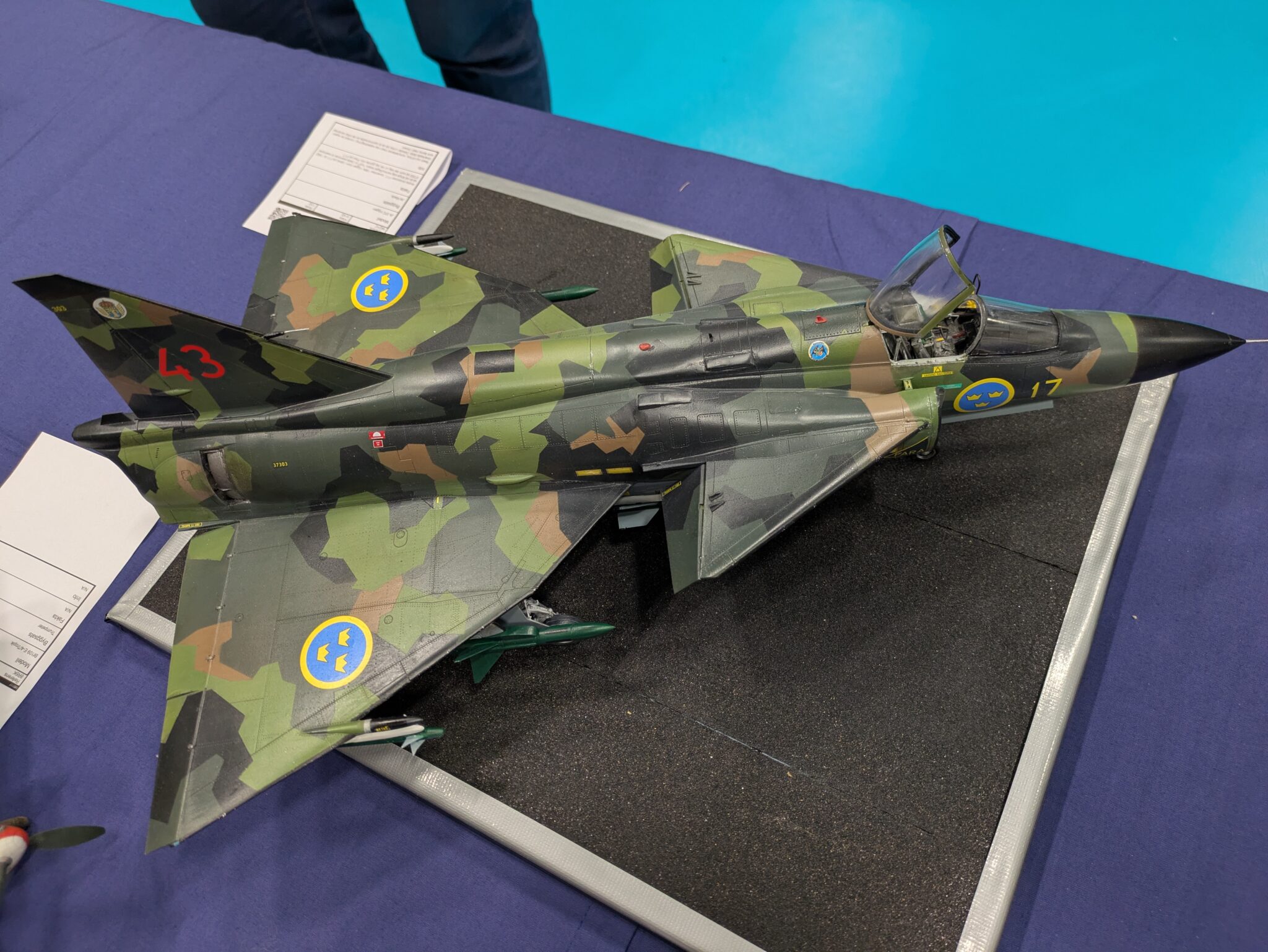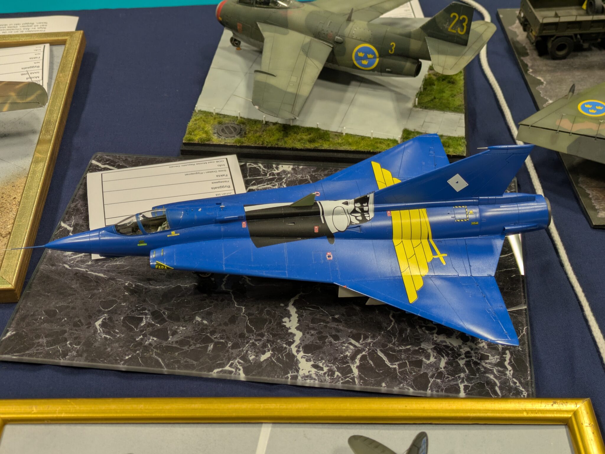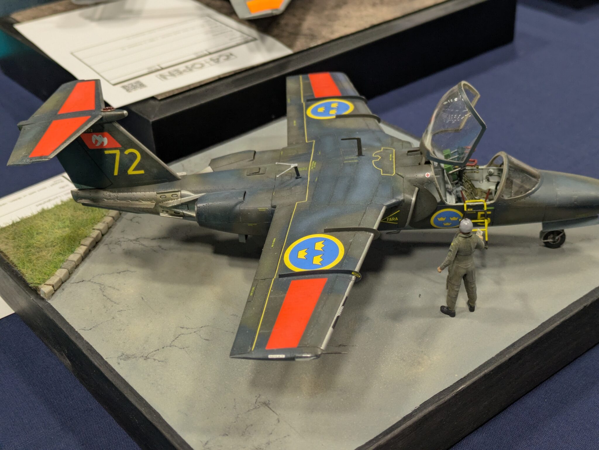 På årets C4-Open i Malmö, nu i helgen (25-26 oktober), fick Claes Wahlund från Pilot-Replicas mottaga SFF-priset för sin SK 60C i splinter kamouflage. Rickard Andersson överräckte priset till Claes. Första fotot: Niklas Jansson. Fotot på SK 60C: Rickard Andersson. Text: Tor Netterby